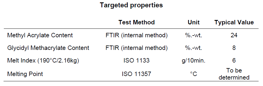 Lotader AX8900T is designed as an additive for engineering plastics compounds, virgin or recycled, where it can be used as impact modifier, viscosity enhancer, compatibilizer, hydrolysis protection, …. It will also be tested as adhesion promoter in foams and to improve rutting resistance in high performance bitumen for road construction.